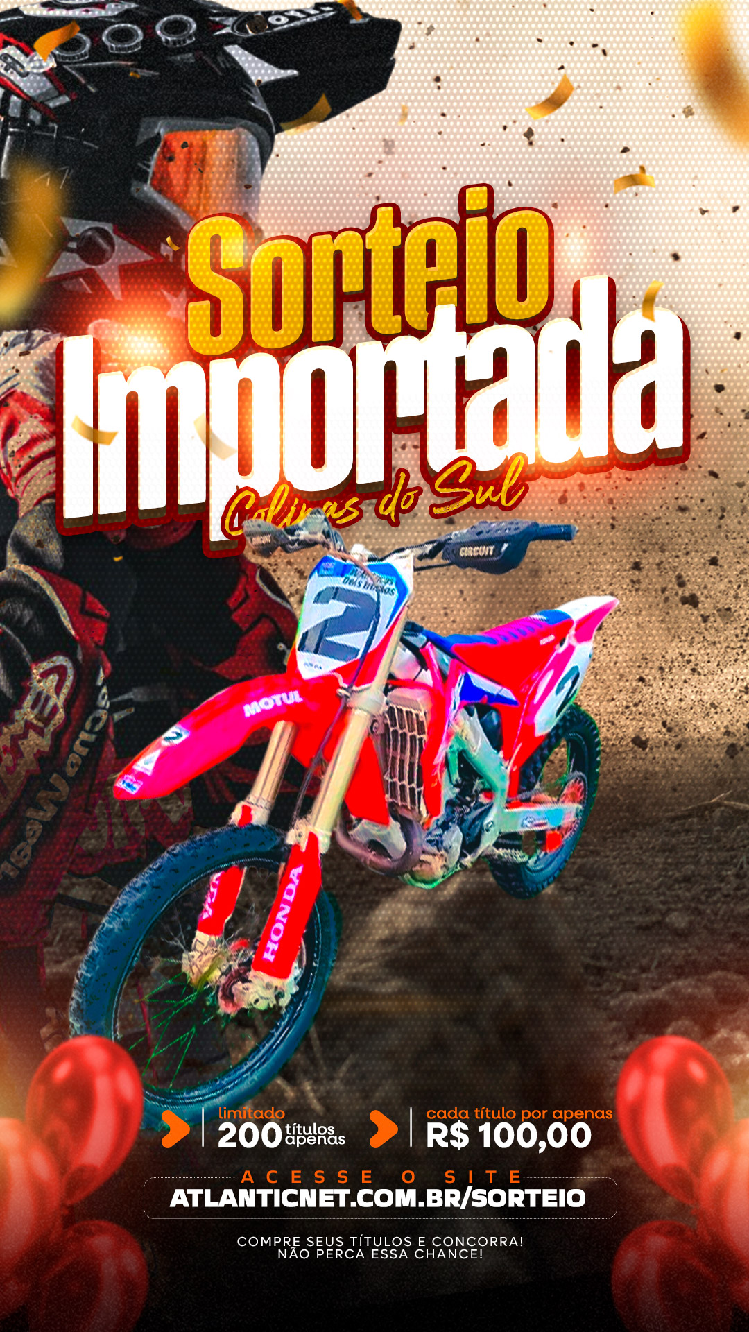 Segundo os organizadores, serão disponibilizados apenas 200 títulos, ao valor de R$ 100,00 cada. O sorteio acontece de forma transparente e segura, por meio da plataforma oficial atlanticnet.com.br/sorteio.